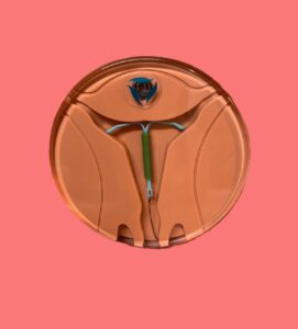 ミレーナの根元には抜去用の細いピアノ線があり、膣内に見える程度に短く切ります。(このピアノ線をひっぱるとミレーナを抜くことができます)